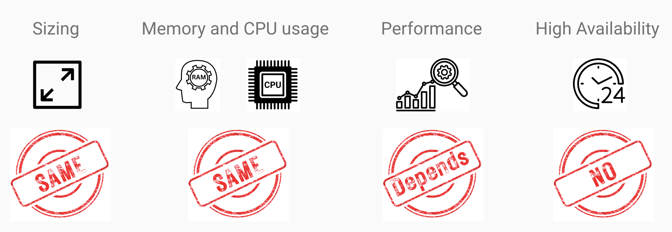If you thought I would say “same” again you were wrong 😀 So it depends You can guess now, so the answers are the same as well, but the importance here is this now that you are moving your workload to the cloud it’s a great opportunity to run all the load and performance tests to get the correct memory and sizing to adjust correctly your quota that will create a more cost effect configuration for your applications. Platforms like Kubernetes can make use of HorizontalPodAutosacler (HPA), VerticalPodAutoscaler (VPA) and Kubernetes Event Driven Autoscaler (KEDA).